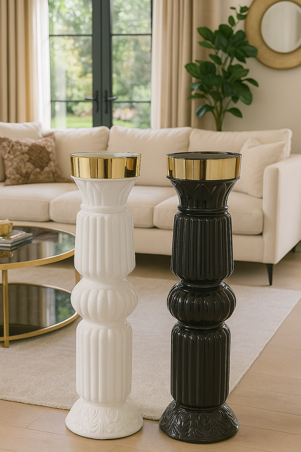 A 24-inch designer port with artistic patterns and fine detailing, perfect for adding a stylish, custom look to any space.