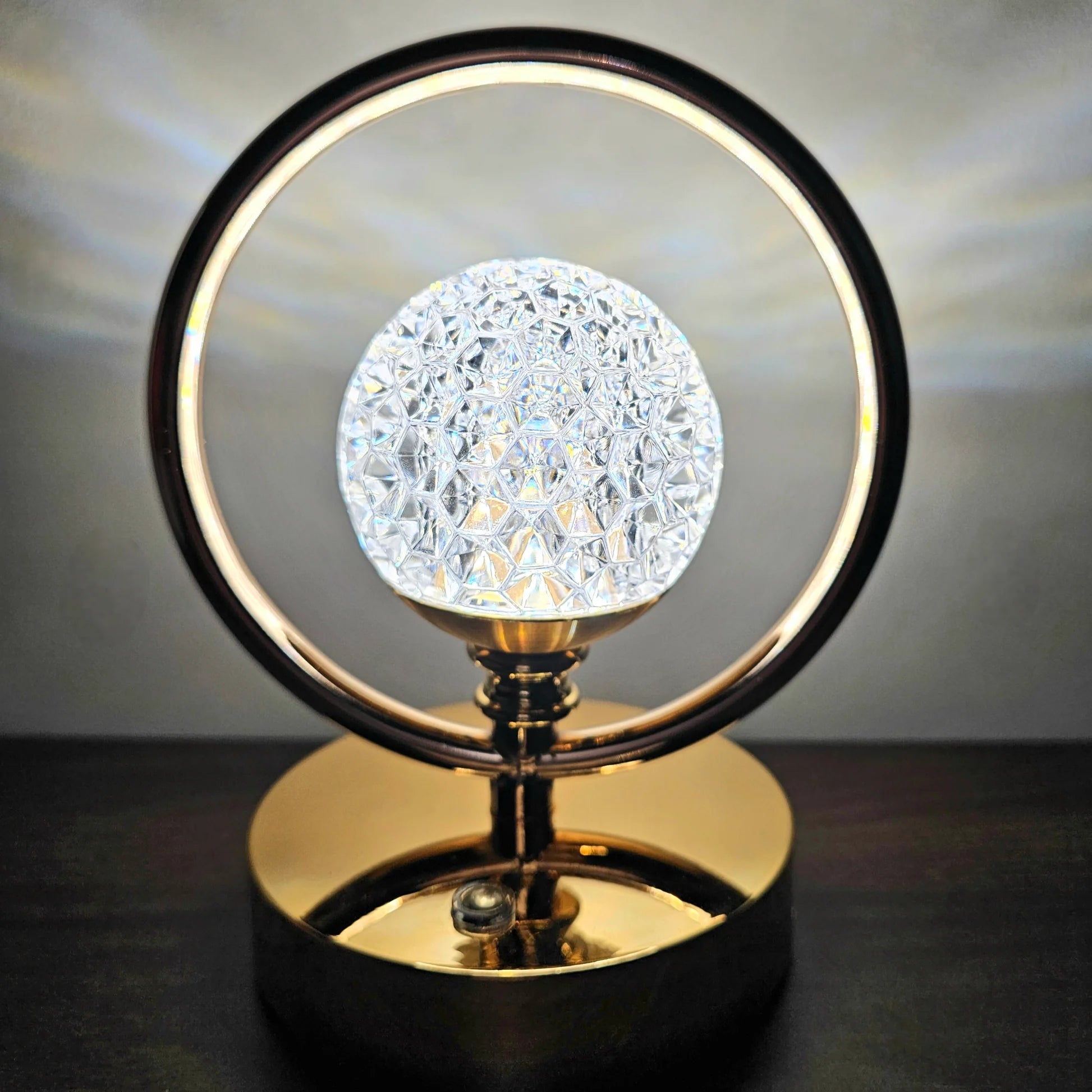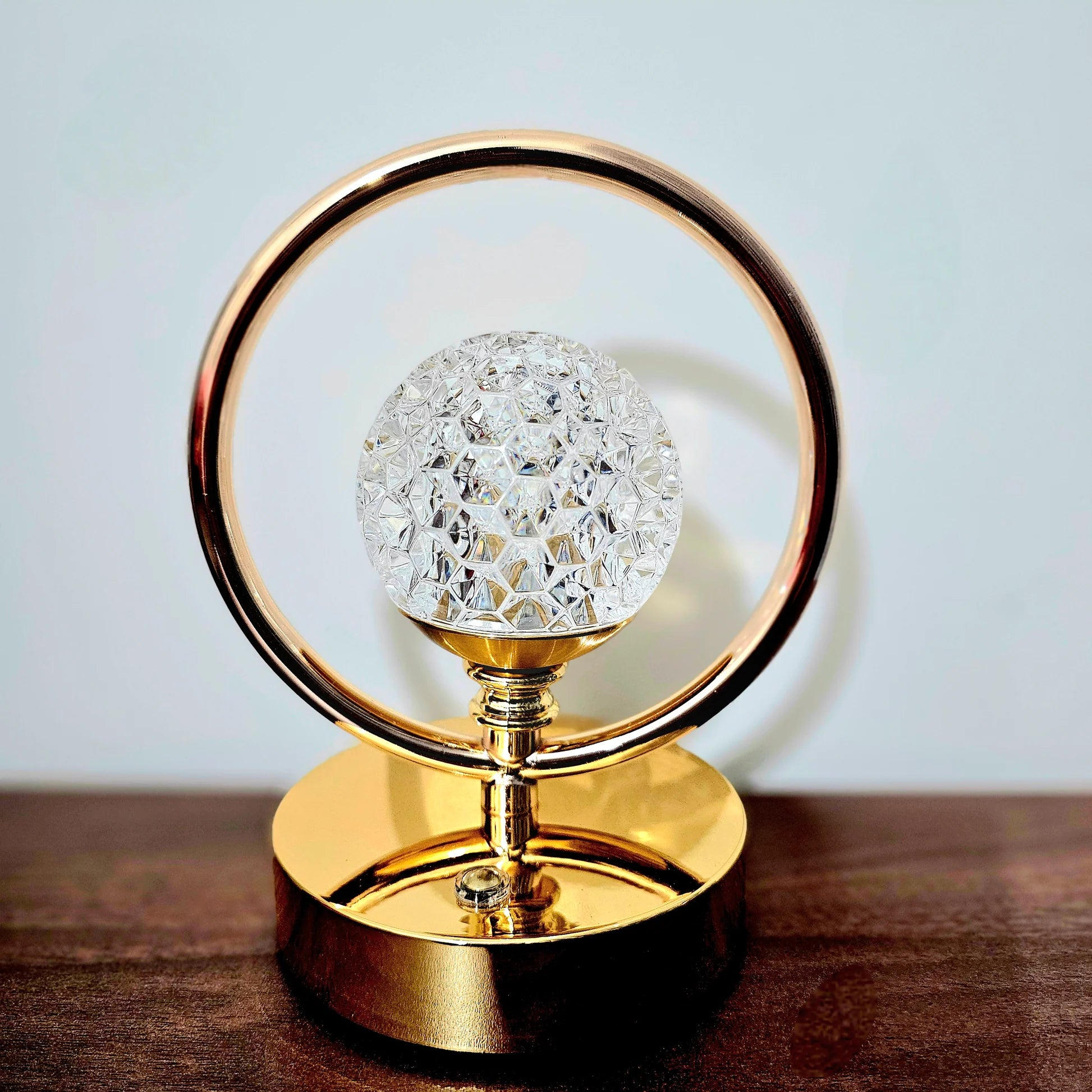Crystal Diamond Round Ring Table Lamp, Night Stand Light for Bedroom, Living Room